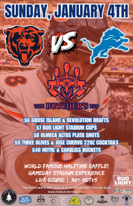 When it’s Bears vs Lions, there’s no better place to be than a packed house at The Butcher’s Tap. Come early, get loud, and settle in for a true game-day experience.