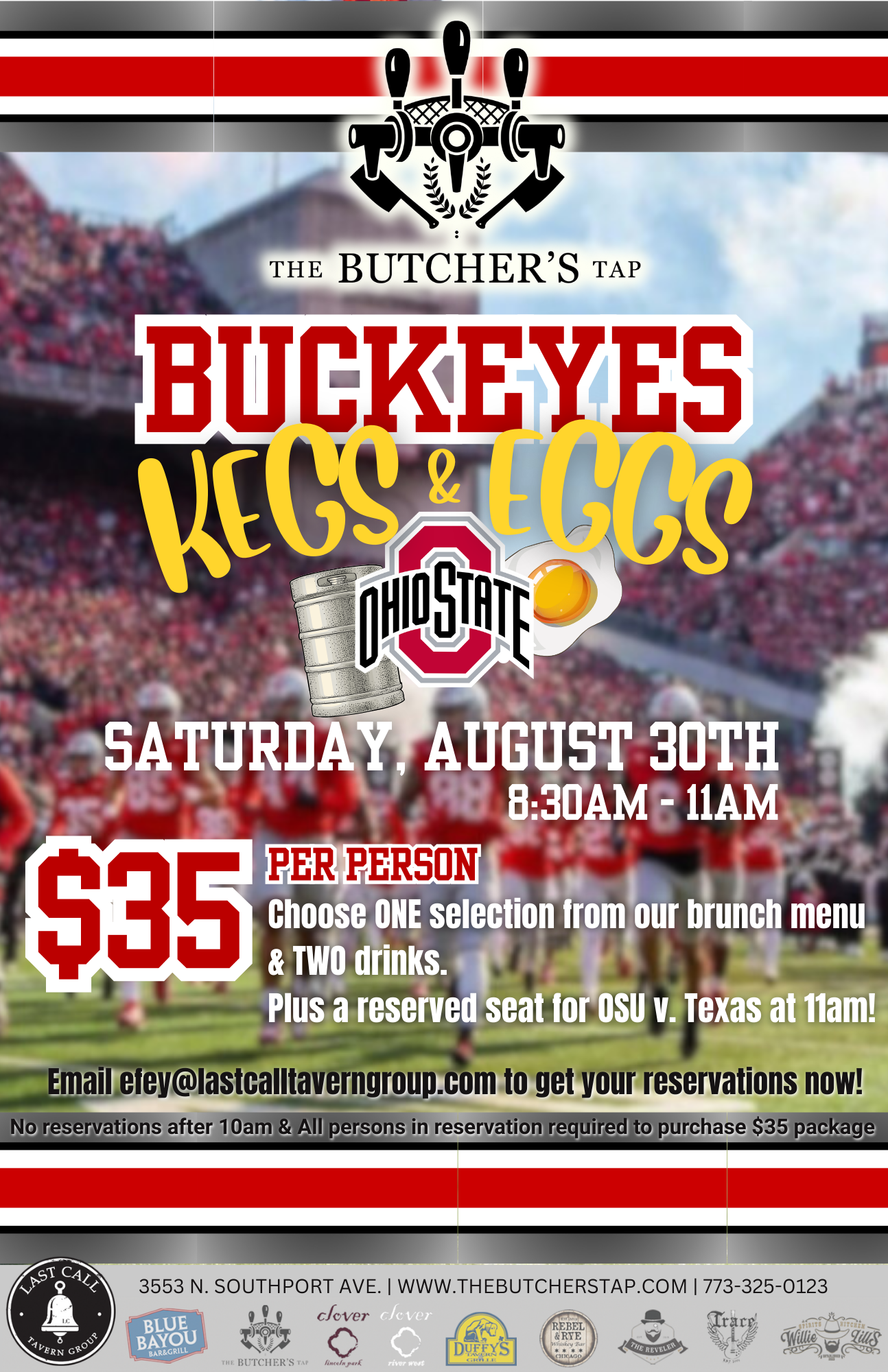 Start game day the Buckeye way! Join us at The Butcher’s Tap for our Kegs & Eggs Brunch before Ohio State takes on Texas.