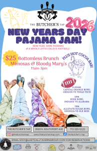 New year, same pajamas. Roll out of bed, keep the slippers on, and start 2026 the right way at The Butcher’s Tap. We’re turning New Year’s Day into a laid-back, cozy hang with brunch cocktails, a hot cocoa bar, and wall-to-wall college football — no resolutions required.