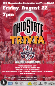 Calling all Buckeye superfans! 🏈 Think you bleed scarlet and gray? Prove it at our OSU Championship Celebration & Ohio State Trivia Night at The Butcher’s Tap! We’re packing the bar with college football energy, Buckeye banter, and more trivia glory than a Script Ohio marching line.