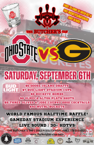 The Butcher’s Tap is where Buckeye Nation in Chicago comes alive! Watch Ohio State take on Grambling State with the ultimate gameday atmosphere—over 30 HDTVs, booming live sound, and our legendary halftime raffle. The first 25 fans through the door score a free Buckeyes/Butchers shot glass, so get here early. Gameday specials include $6 Goose Island drafts, $7 Bud Light stadium cups, $8 Buckeye Bombs, $8 Olmeca Altos Plata shots, $9 Three Olives & Jose Cuervo 220z cocktails, and $40 Nutrl buckets. Whether you’re cheering in scarlet and gray or just along for the ride, The Butcher’s Tap is Chicago’s best Ohio State bar for Buckeye football Saturdays.