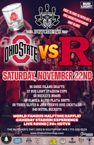 The Buckeyes look to keep the Big Ten momentum rolling as they take on Rutgers — and Chicago’s top Ohio State bar is ready! Arrive early: the first 25 fans get a free Buckeyes/Butcher’s shot glass.