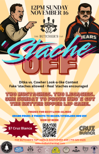 It’s the ultimate upper-lip showdown — Ditka vs. Cowher! Join us for ‘Stache Off, The Butcher’s Tap’s legendary look-alike contest celebrating two coaching icons and their equally iconic mustaches. Whether you’re rocking a real ‘stache or a fake one, bring your best game face and your finest facial hair!